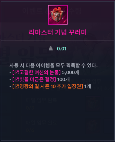 매일 임무 6회 완료 리마스터 기념 꾸러미 1