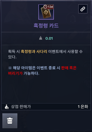 - 이벤트 아이템의 이동 및 복구는 불가능합니다.