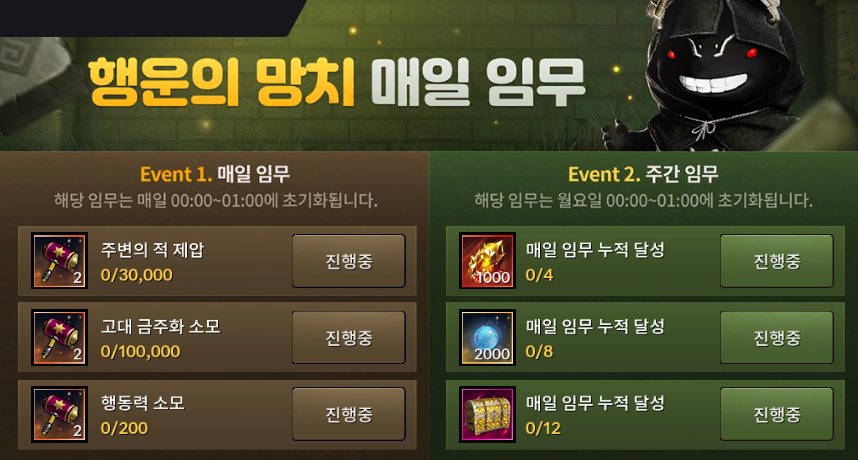 | 주간 임무 (임무는 월요일 00:00 ~01:00에 초기화됩니다.) |