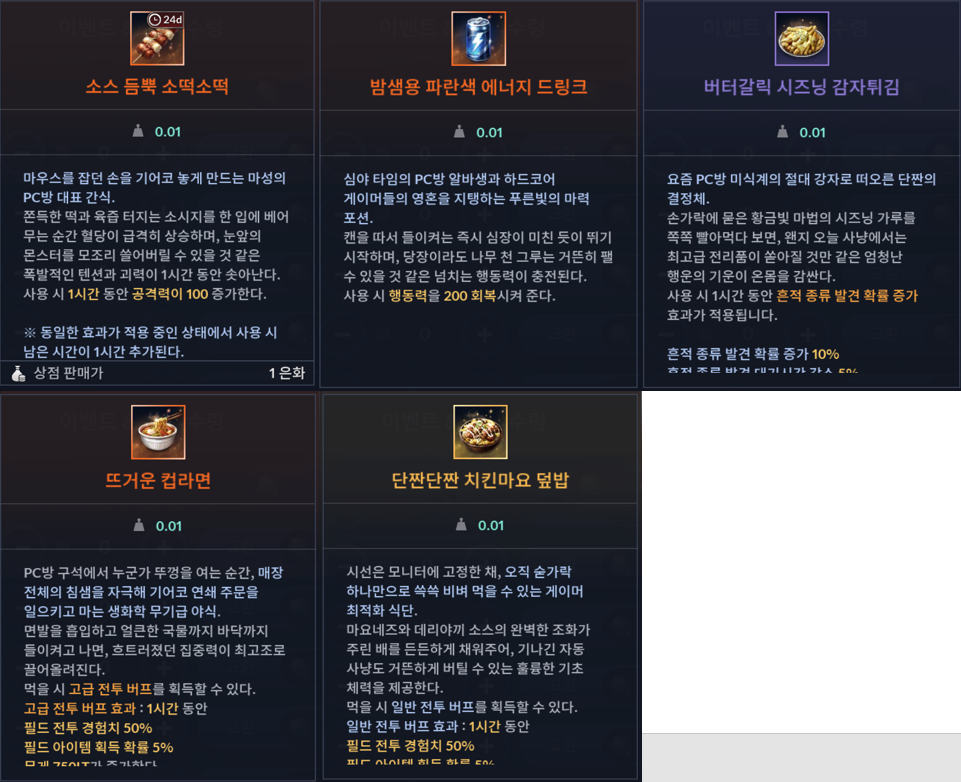- 이벤트 아이템의 이동 및 복구는 불가능합니다.