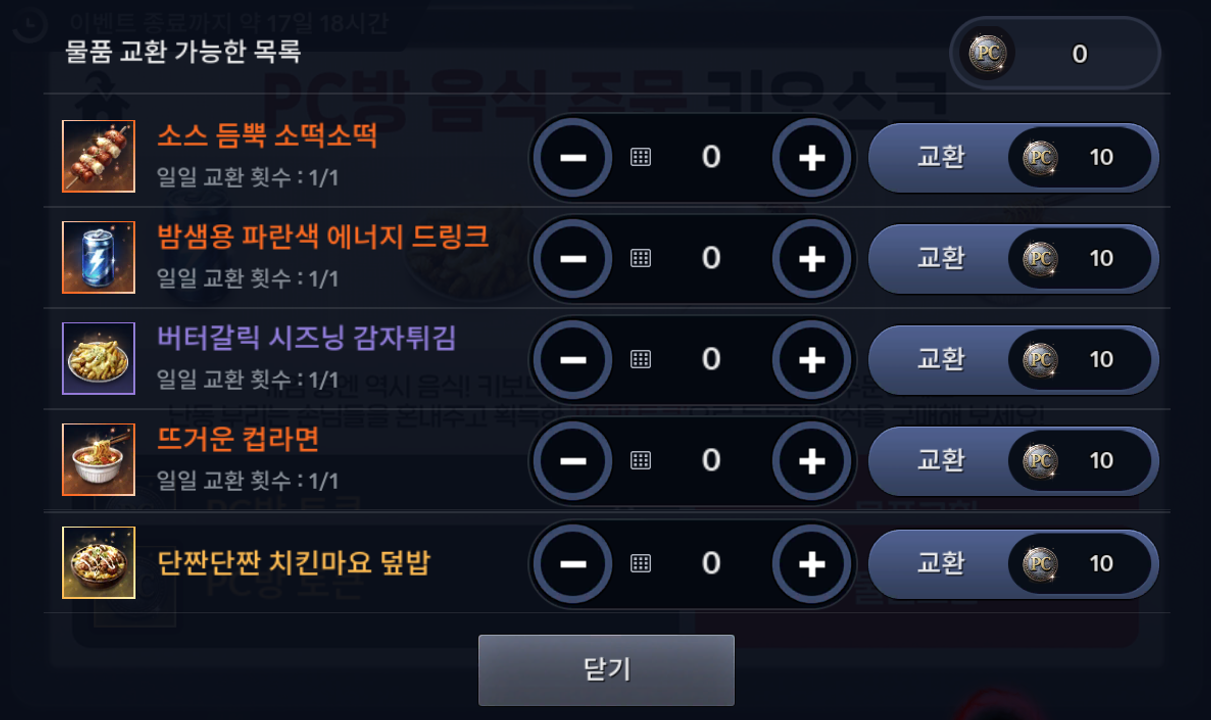 난동 부리는 손님들을 혼내주고 획득한 'PC방 토큰'으로 든든한 야식을 구매해 보세요!