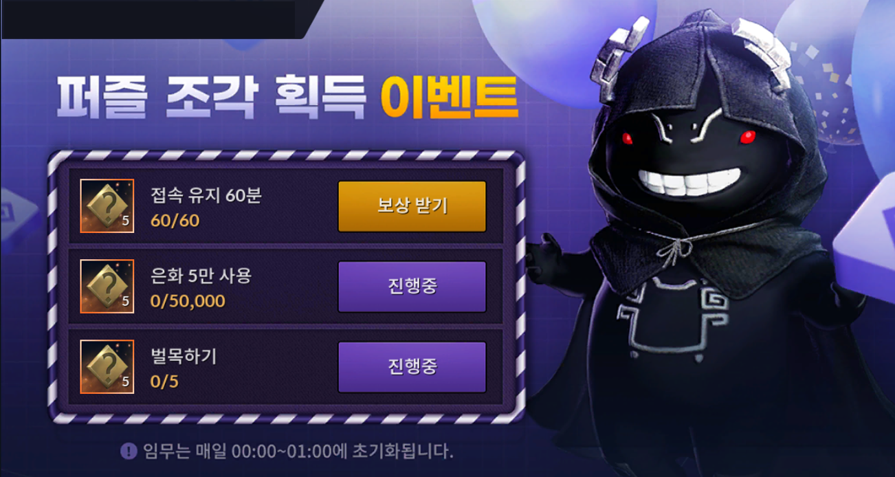 | 접속 유지 60분 | 퍼즐 조각 5개 |