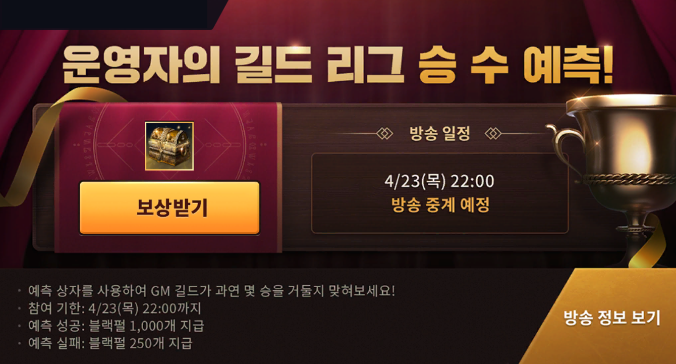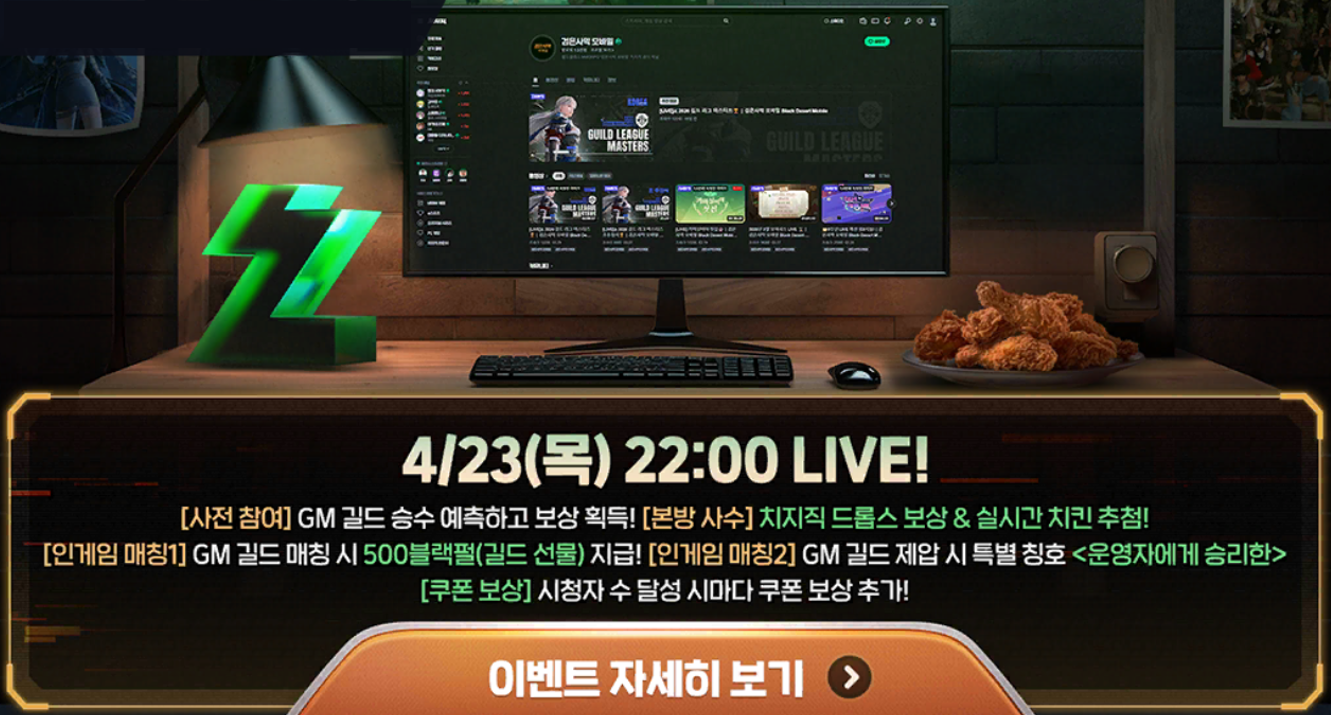 GM 길드 도전! 길드 리그 생방송 기념 이벤트 2026-04-21 10:08 검은사막 모바일
