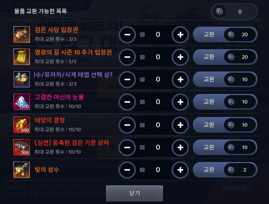 | 길드 리그 대련 토큰 200개 | 길드 리그 대련 토큰 100개 |