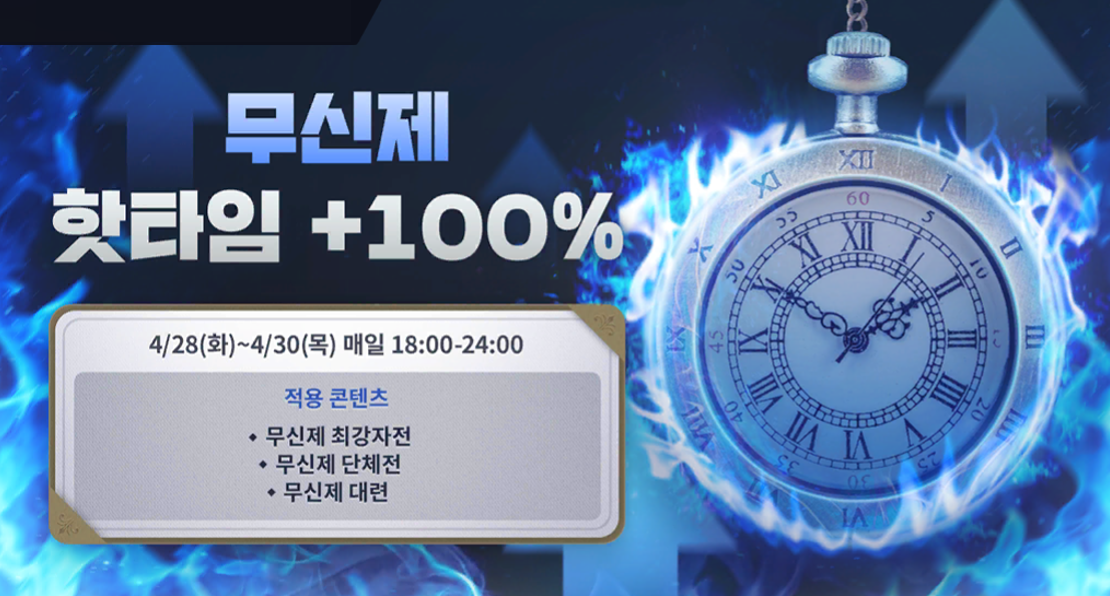 무신제 핫타임 +100% (~4/30 23:59)