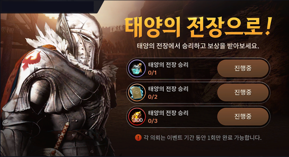 태양의 전장 승리 횟수에 따라 추가 보상을 획득할 수 있는 이벤트가 진행됩니다!