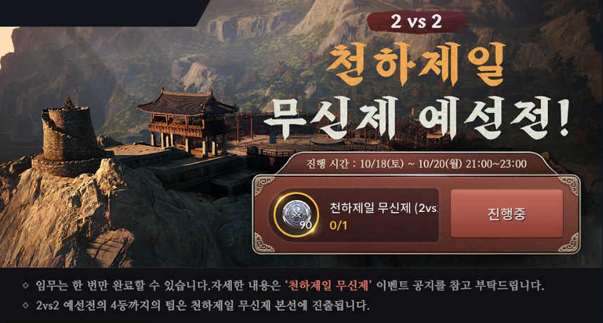 천하제일 무신제 1vs1, 2vs2 부문에서 우승할 모험가님은 누구일지!