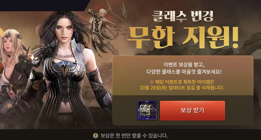 모험가님께서 원하는 클래스로 무한 변경할 수 있는 이벤트가 찾아왔습니다!