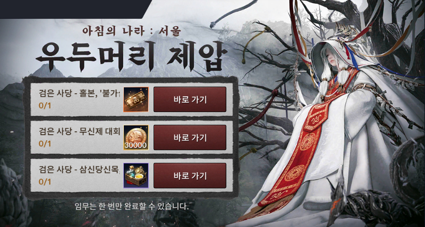 이벤트 기간 동안 검은 사당의 불가살, 우투리, 삼신을 제압해 보세요!