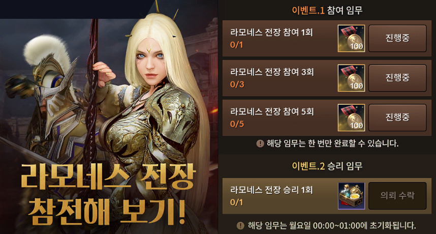 라모네스 전장에 참여하면 명예 훈장을 총 300개 드려요!