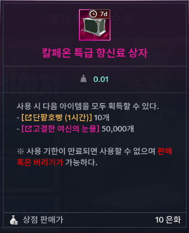 - 이벤트 아이템의 이동 및 복구는 불가능합니다.