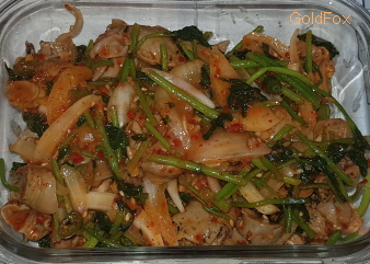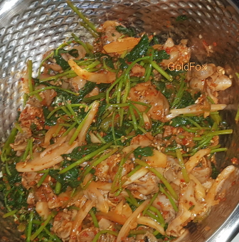 골뱅이에 미나리와 양파를 넣고 만들었어요!