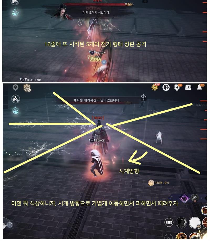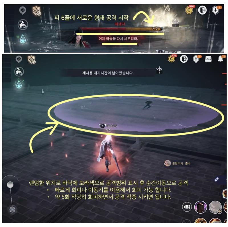 이럴때는 그냥 아껴둔 회피, 피해감소 스킬 연타 또는 최후의 스킬 "흑정령 탈출"을 이용해서 위기를 모면 합시다.