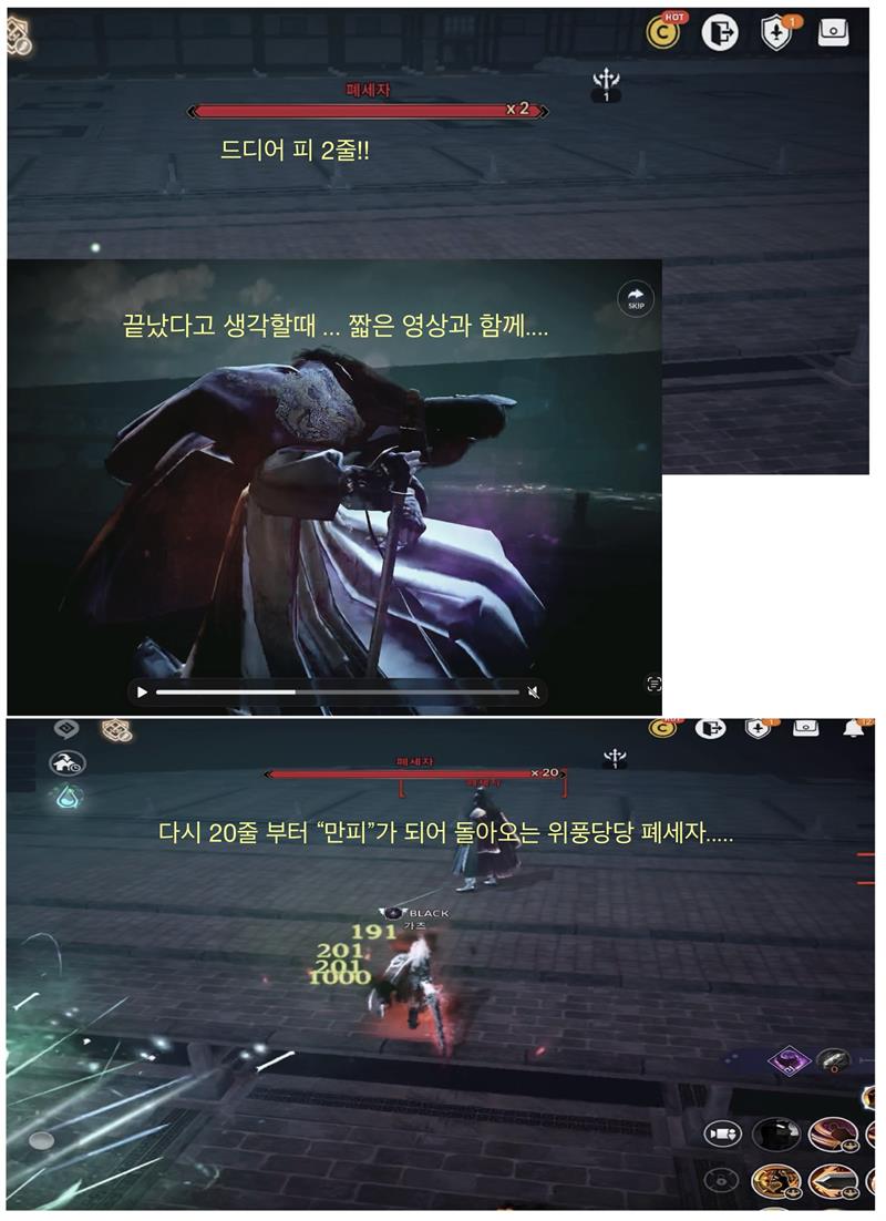 이제 열심히 때리다 보면 피 2줄이 되면서 순간 "끝난줄 알았냐?" 영상이 나옵니다.