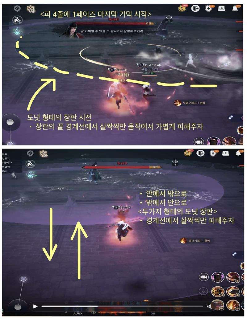 피 4줄에 1페이즈 마지막 기믹 (도넛 형태 장판 시전)