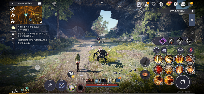 흑정령과 요정 UI를 왼쪽에 함께 배치해서 열기 잔여량 및 요정 파견 시간 등을 한 눈에 파악할 수 있고, 기술 UI 바로 좌측에 물약과 요리를 배치할 수 있다는 점이 개인적으로 좋았던 것 같습니다 ㅎㅎ