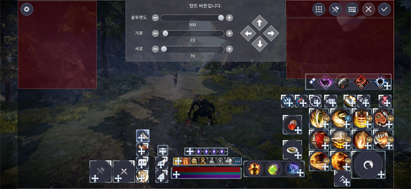 모바일 유저이다 보니 기술 UI를 화면 중앙에 배치하는 것에 대해 아직까지는 어색함과 어려움이 있어, 현재는 기존 UI 위치와 동일하게 오른쪽에 배치를 해서 사용하고 있습니다..!