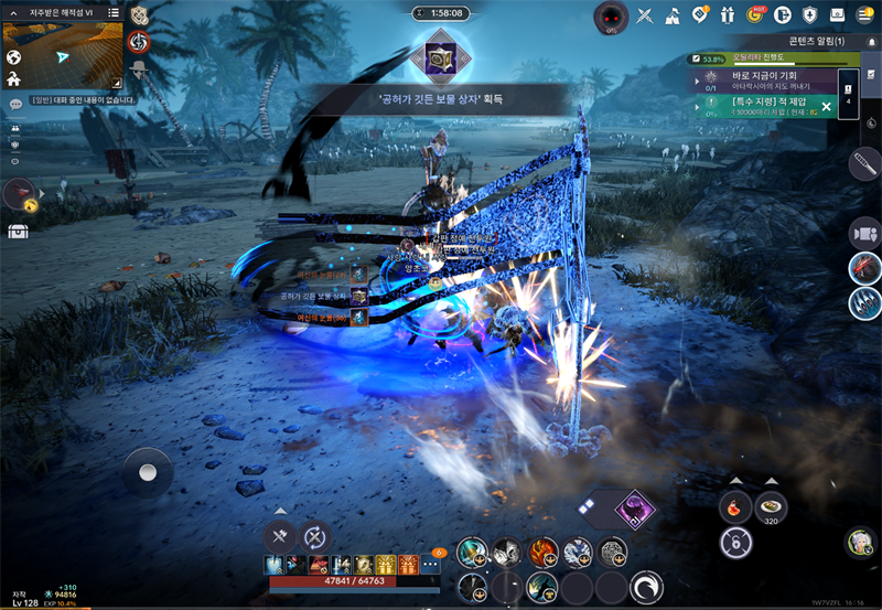 모바일버전의 경우는 왼쪽 이동키패드, 오른쪽 스킬버튼인 기본적인 시스템은 변할 수 없기에 시스템은 유지하되 기존 스킬버튼의 조합을 바꾸어 화면 중간부분까지 손가락이 무리하게 관여하지 않게 가로폭을 줄였습니다.