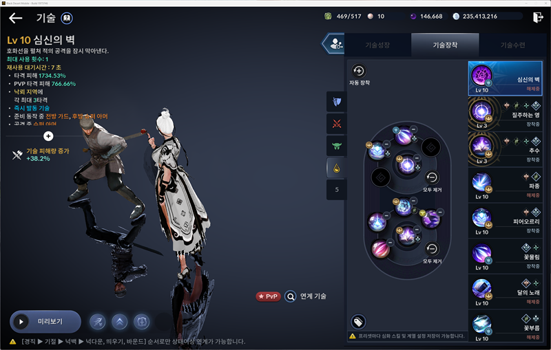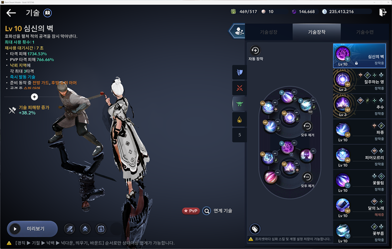 심신의 벽 (PvP의 핵심): 초령의 생존을 책임지는 기술이죠. 전방 가드와 후방 슈퍼 아머로 적의 진입을 허무하게 만들고 역공의 기회를 잡는 용도입니다.