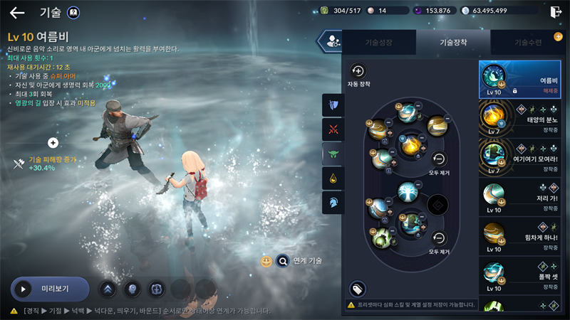 주로 상대가 접근시에 카운터로 사용합니다. 기술효과는 라밤피해량증가를 사용중입니다
