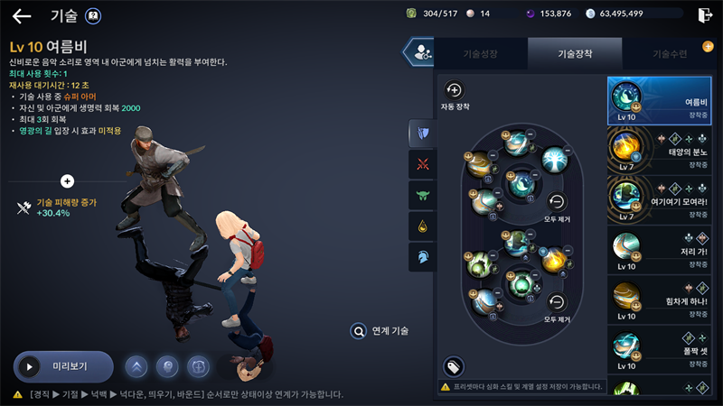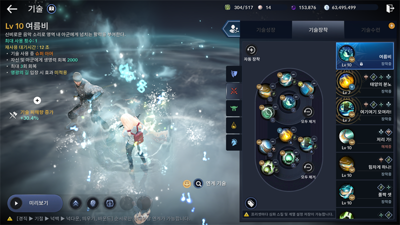 상세설명은 사냥트리의 여름비와 동일합니다. 파티원과 자신의 회복을 위해 사용합니다.