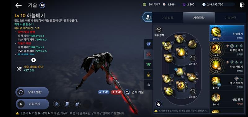 이동기를 위해 하늘베기 돌진찌르기 선봉추격 망령가르기는 전부 넣되 수동상태를 둘 때가 많아요
