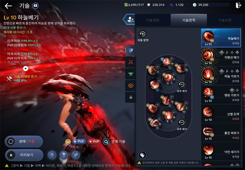 따라서 사냥터의 몹 특성에 따라 프리셋의 선택과