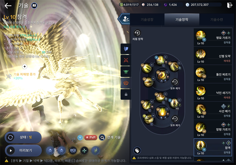 특히 계열세팅은 아히브 대신 세르트로 피흡수, 즉 체력 회복에 목적을 두었음. 일반 필드 사냥에도 유용한 건 세르트 설정이라 몹 개체 타격 수 도 좋음. 게다가 빠른 빛 상태 세라핌이라 상기 언급 컨텐츠시 빠른 이동에 좋음. 단, 선봉: 이동기는 기술 잠금하고 수동 사용필요