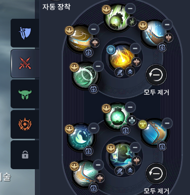 * 참고용이겠지만 어떤 세팅이던 저리가와 북치기는 필수이며, 라밤 2개는 항상있어야 합니다.