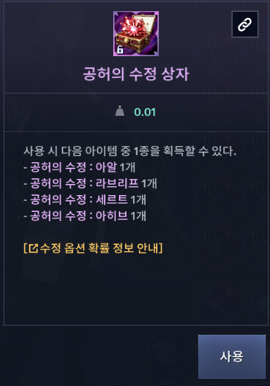 ※ 공허의 수정은 장비에 장착할 수 있습니다.