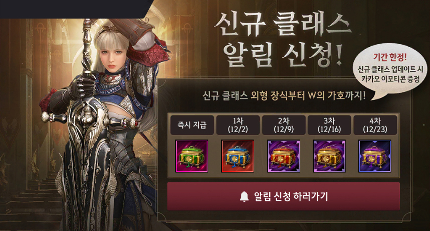[안내] 신규 클래스 알림 신청✨ 2025-11-25 11:30 검은사막 모바일