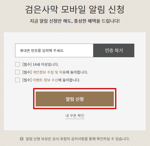 ※ 알림 신청 완료 시 즉시 쿠폰 번호를 확인하실 수 있습니다.