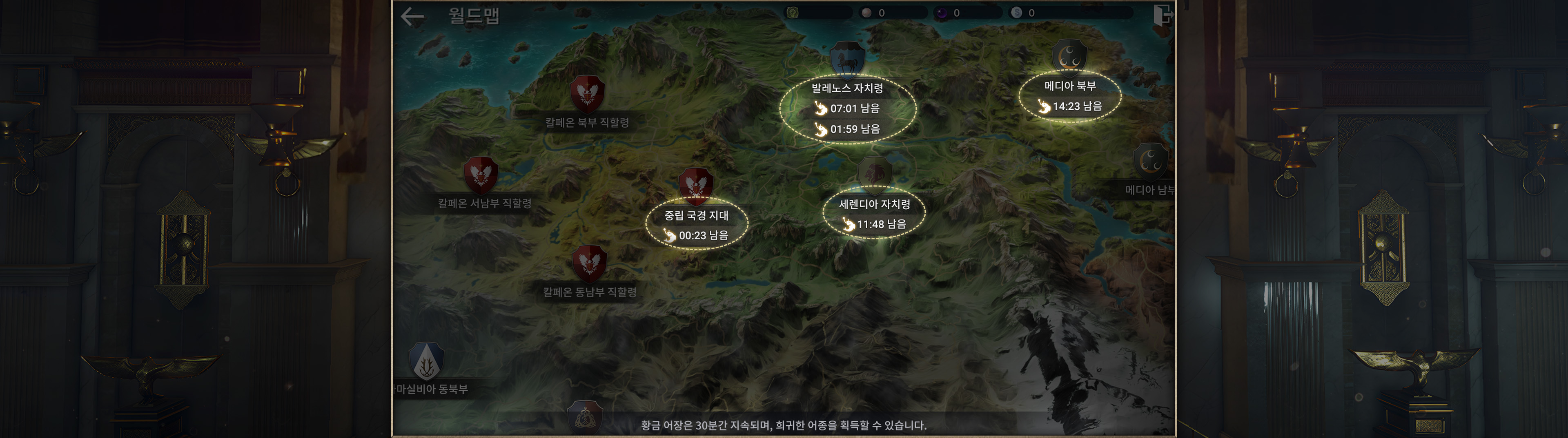 ・황금어장이 열리면 화면 중앙에 메세지가 표시되며 월드맵에 위치가 표시됩니다.
