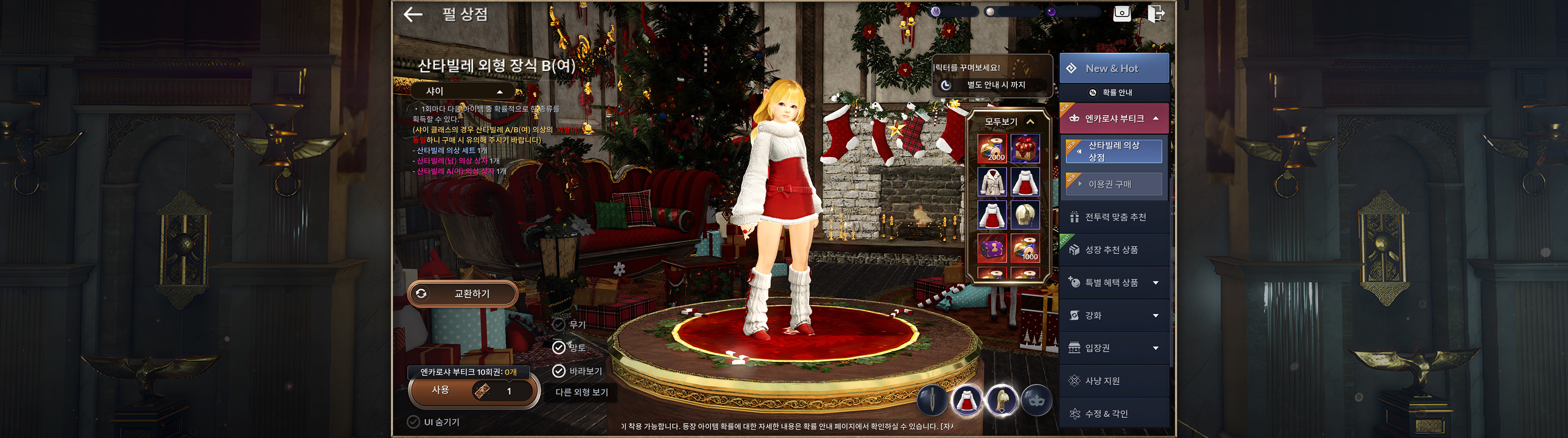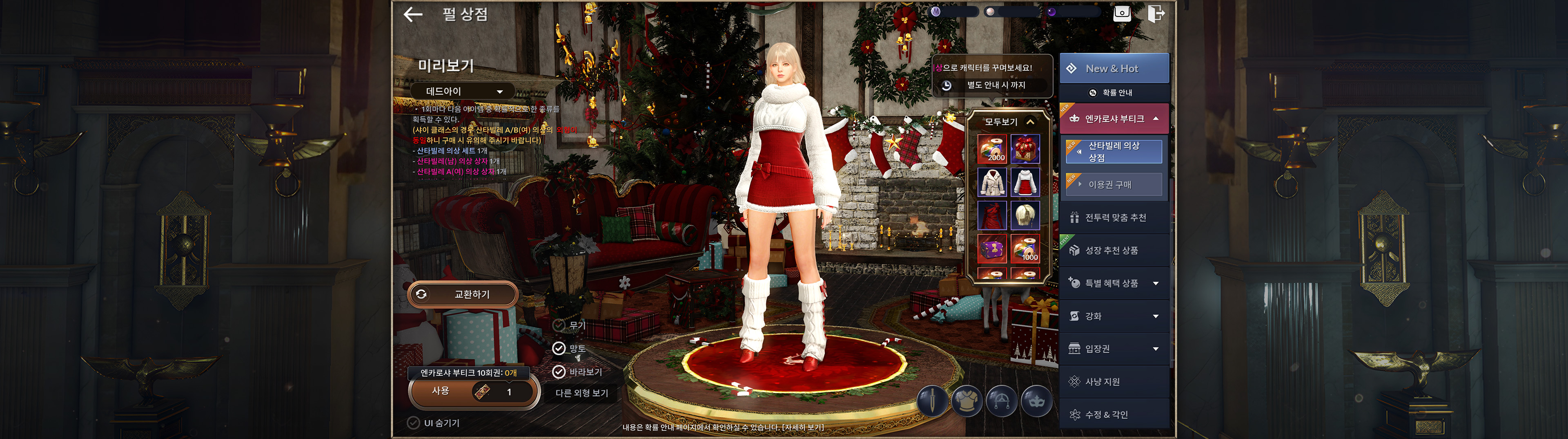 ・의상 분해 시스템 업데이트와 함께 신규 의상 산타빌레가 출시됩니다.