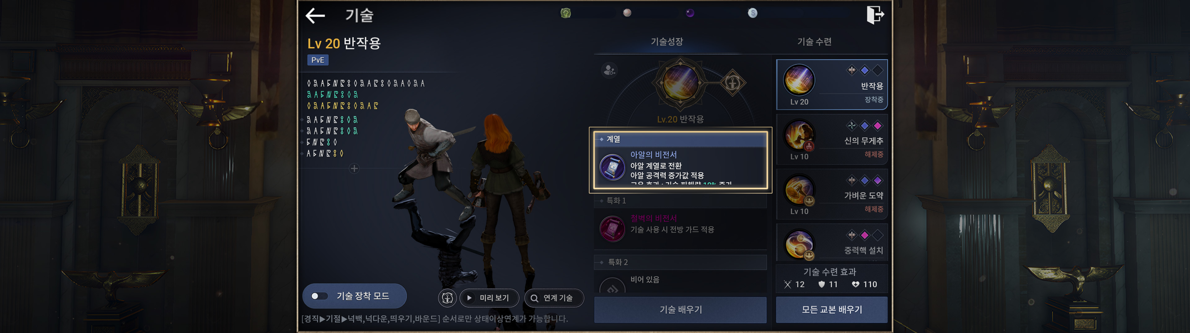 ・10레벨 이상 부터는 신규 기술 교본을 사용하여 레벨을 올릴 수 있습니다.