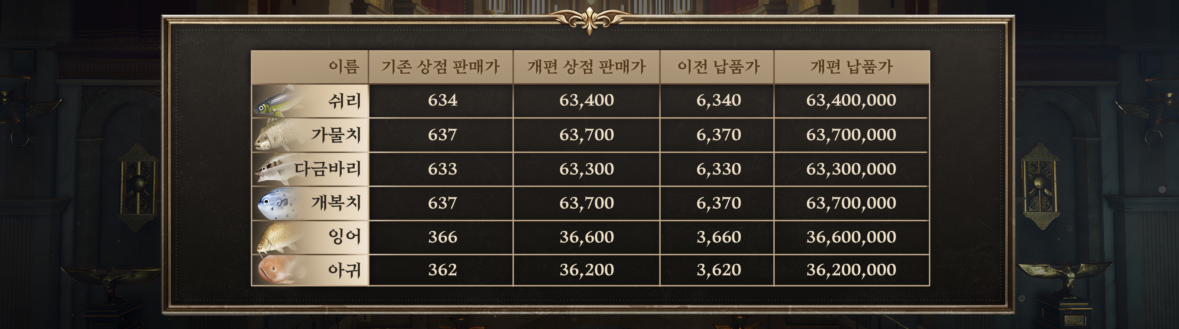 [물고기 가격 상향 조정]