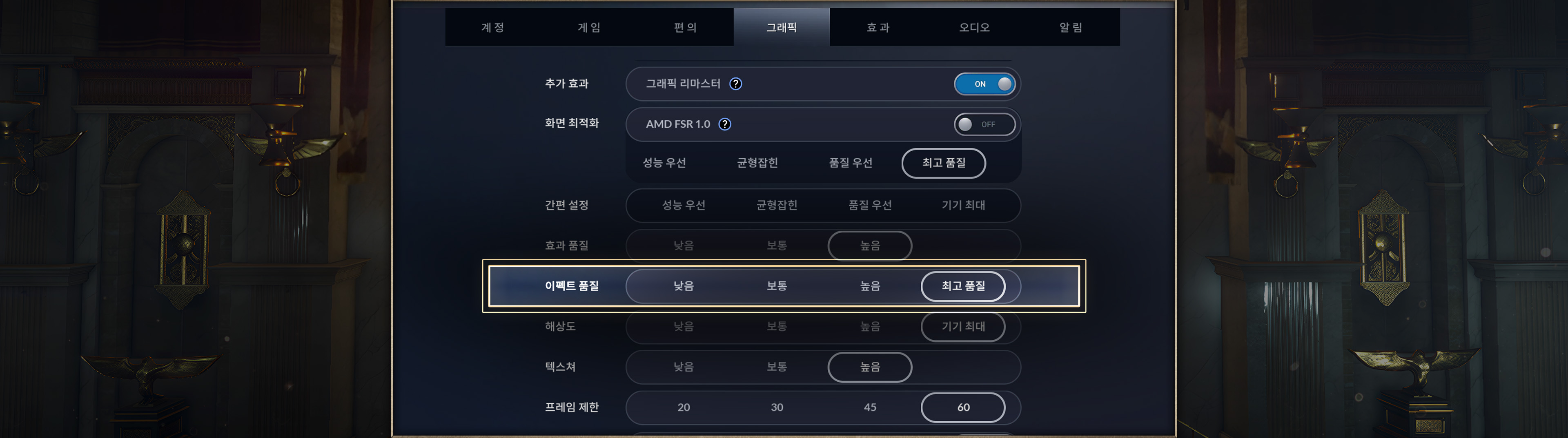 ・효과 품질 설정에 따라 파티클 요소를 최적화하여 성능 향상시키고 더 부드럽게 게임을 플레이하실 수 있습니다.