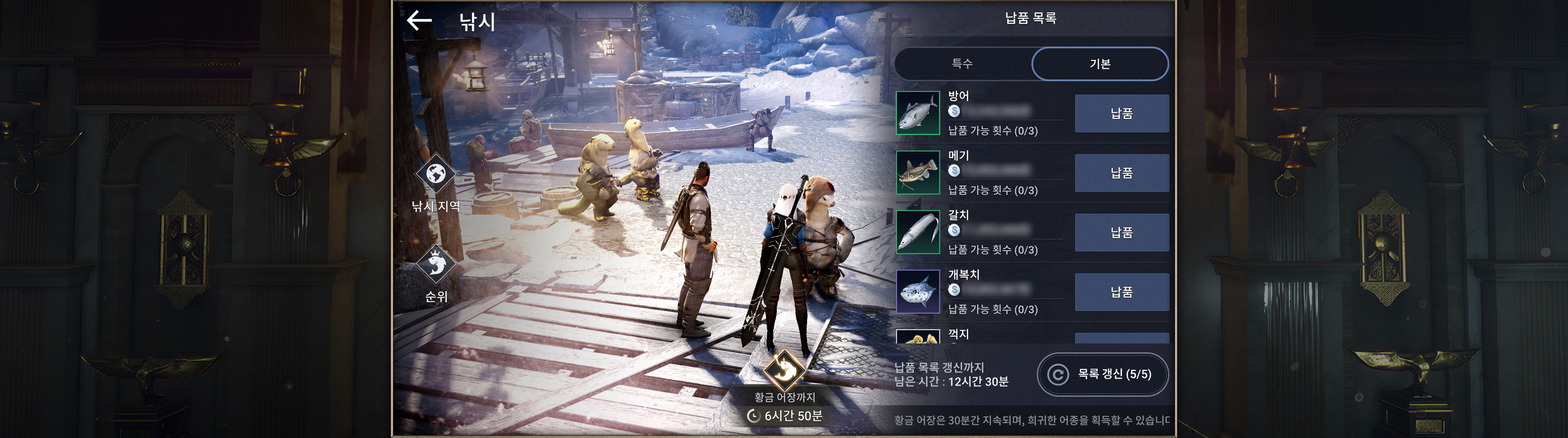 ・특정 시간이 되면 랜덤한 지역 다섯 군데에 황금어장이 열립니다.