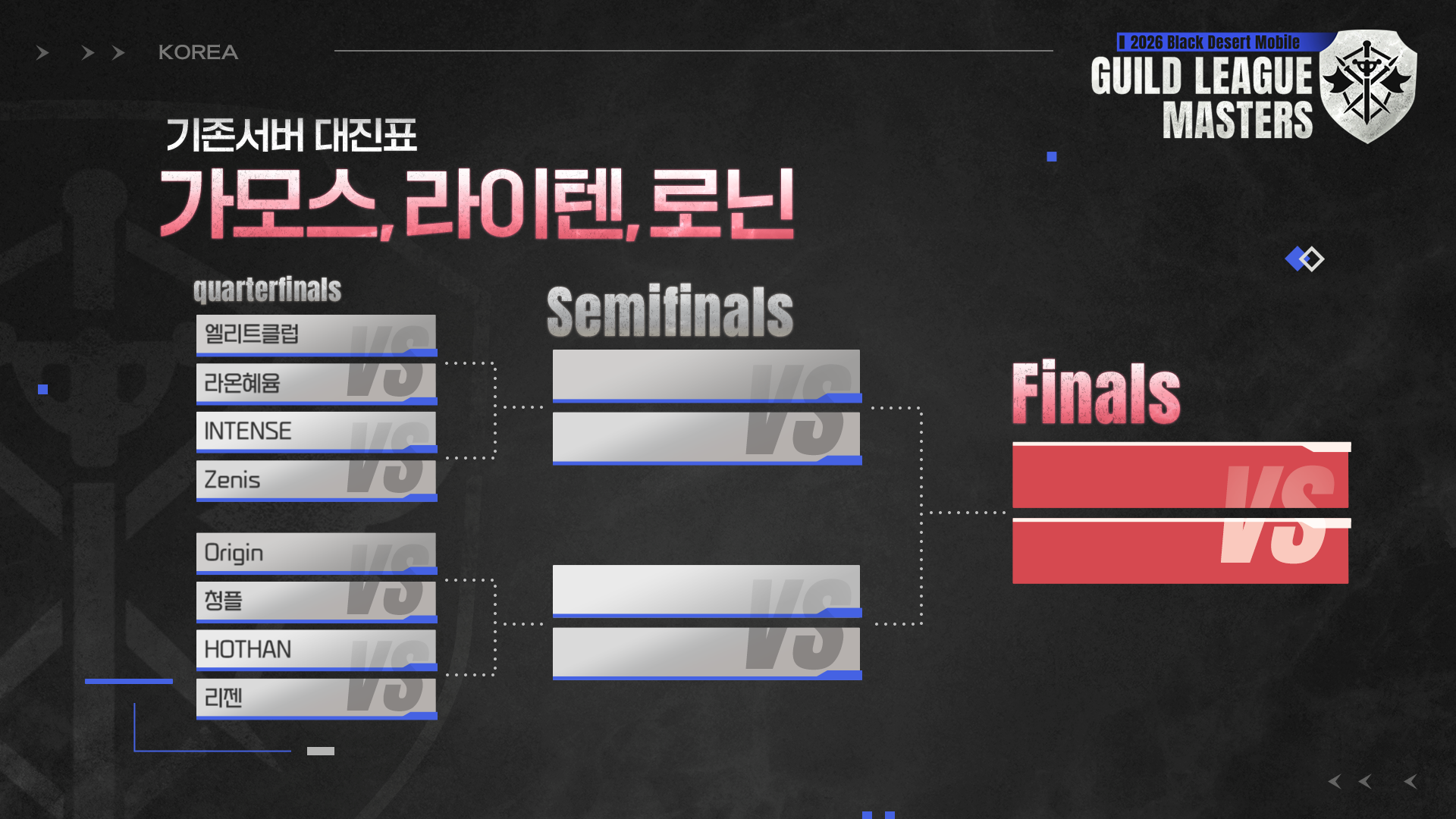 | Origin | 1780 | 예선 1위 (2025 길드 리그 마스터즈 본선 진출 길드 대상 8강 시드권 적용) |