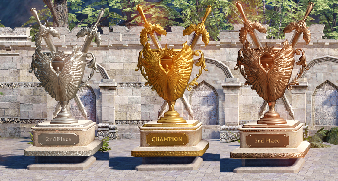 - 20,000 블랙펄 - [칭호] 무신제 1vs1 준우승자 - [영지조경물] 무신제 은빛 트로피 - [외형 장식] 은빛 왕관 - 시간이 깃든 반려동물 상자 3개 - 클래스 변경권 세트 1개 |