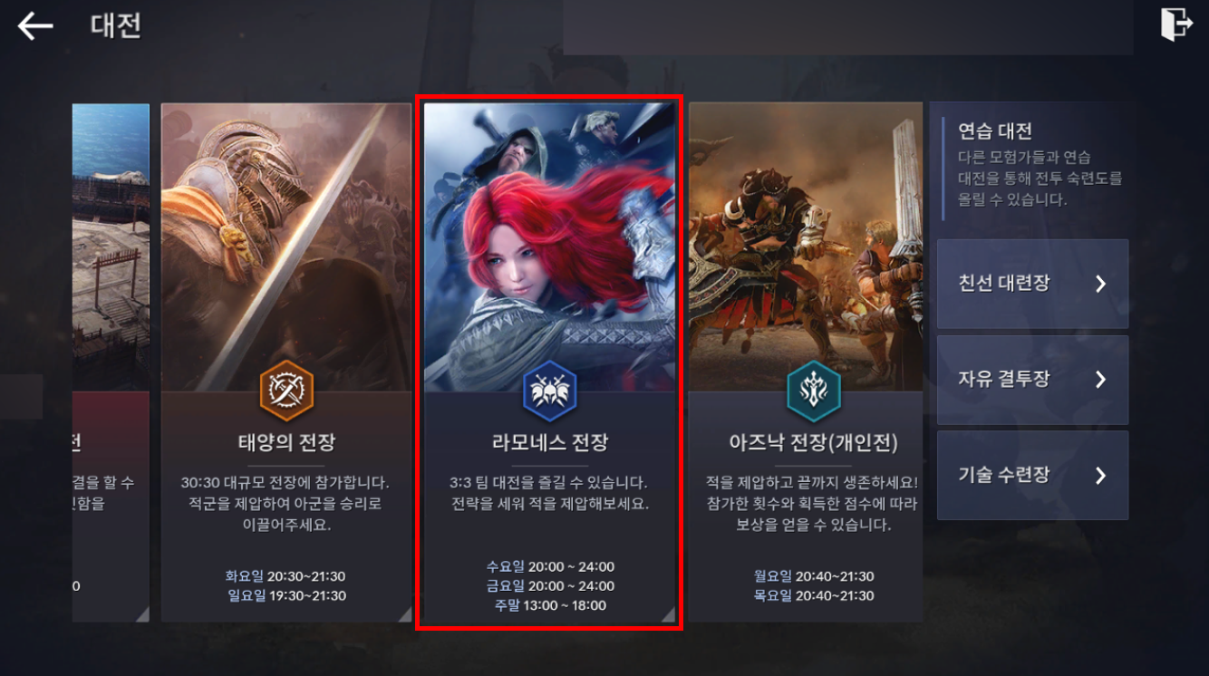 기존 라모네스 전장은 평일 내내 진행되어 매칭에 다소 어려움이 있었는데요.