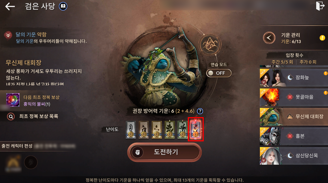 ㆍ해당 우두머리의 설화를 완료하면 도전할 수 있습니다.