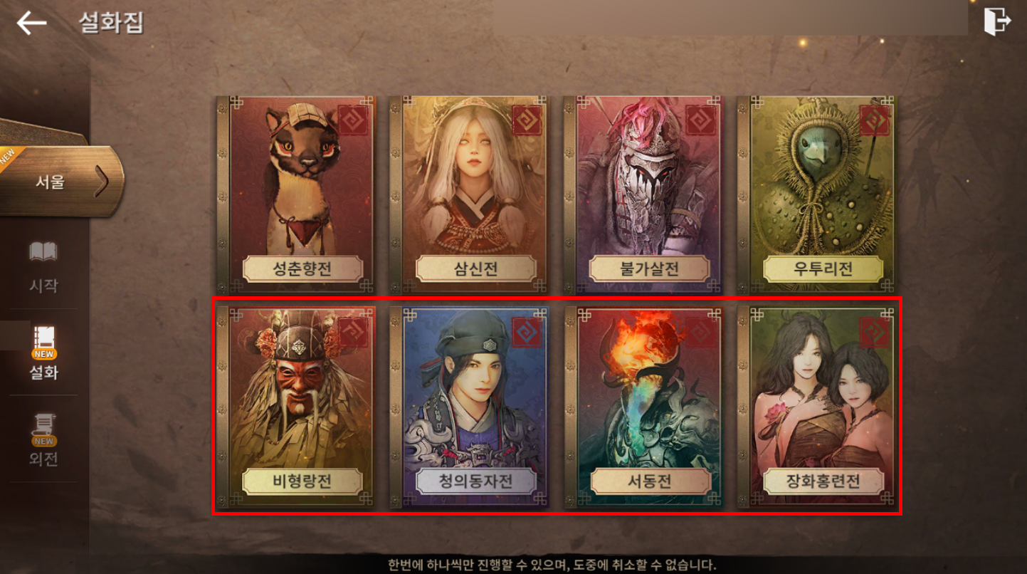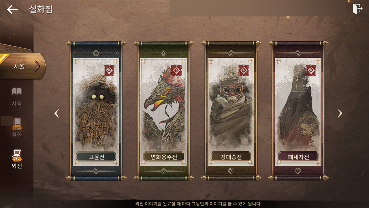 아침의 나라, 서울의 설화집을 모두 완료하시면 완결편에 해당하는 외전 5종을 즐기실 수 있는데요.