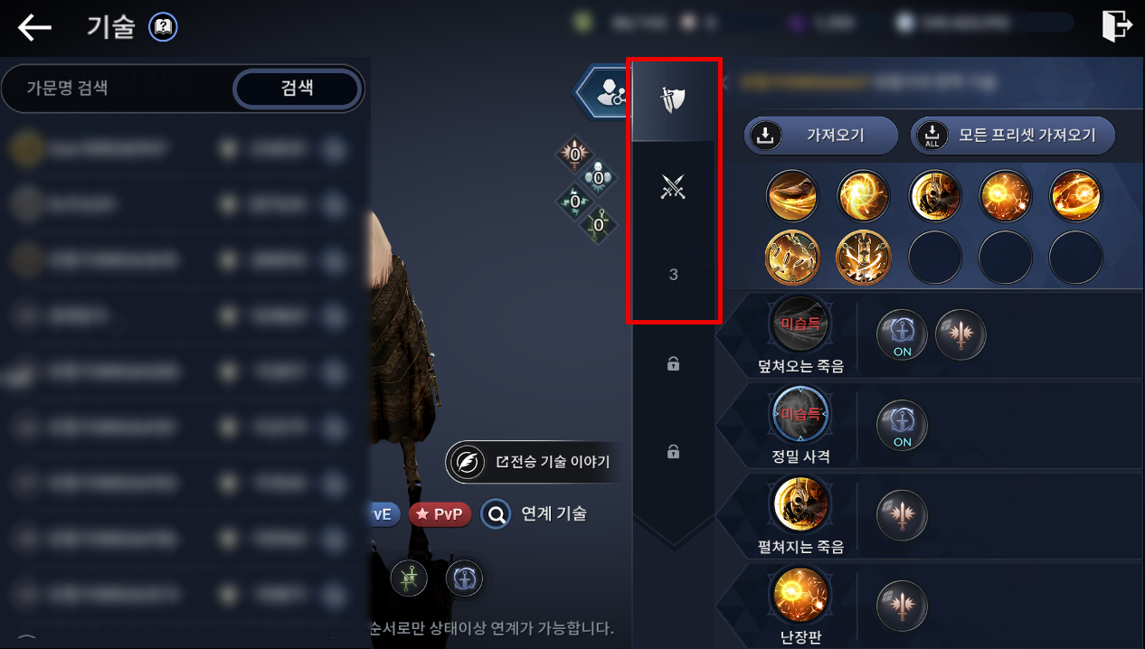 - 다른 모험가의 기술 검색 시, 해당 모험가가 설정한 기술 프리셋 태그를 확인할 수 있습니다.