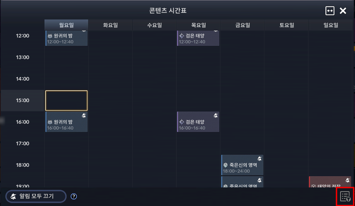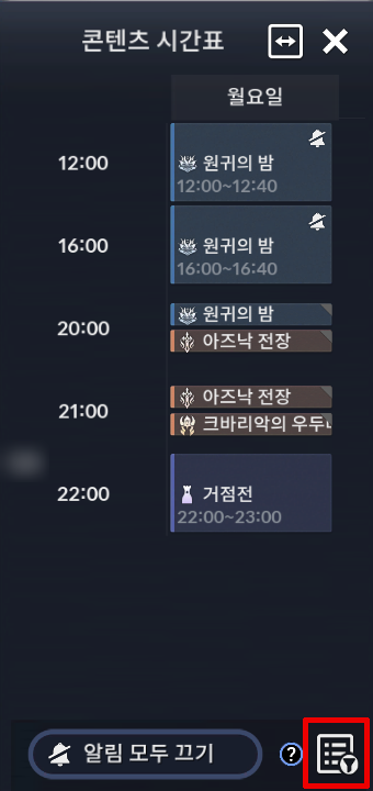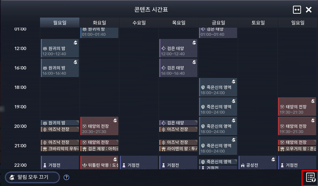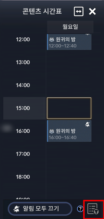 - [메뉴] - [시간표]에서 콘텐츠가 있는 시간대만 표시할 수 있도록 버튼이 추가됩니다.