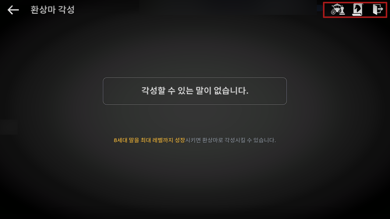 - [영지 - 마구간 - 환상마 각성] 터치 시 가장 기운이 높은 환상마가 기본 선택됩니다.
