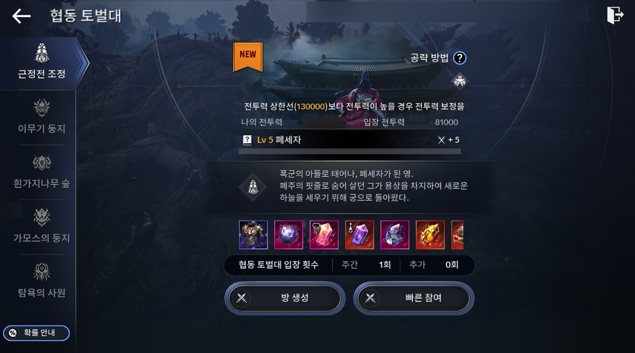 폐세자 업데이트 기념 협동 토벌대 모집