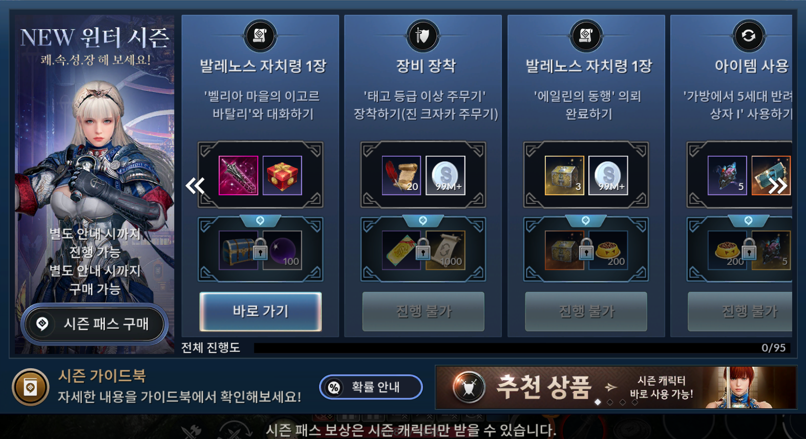 내용 : 일일 과제를 완료하고 흑정령 패스 아이템을 획득해 보세요!