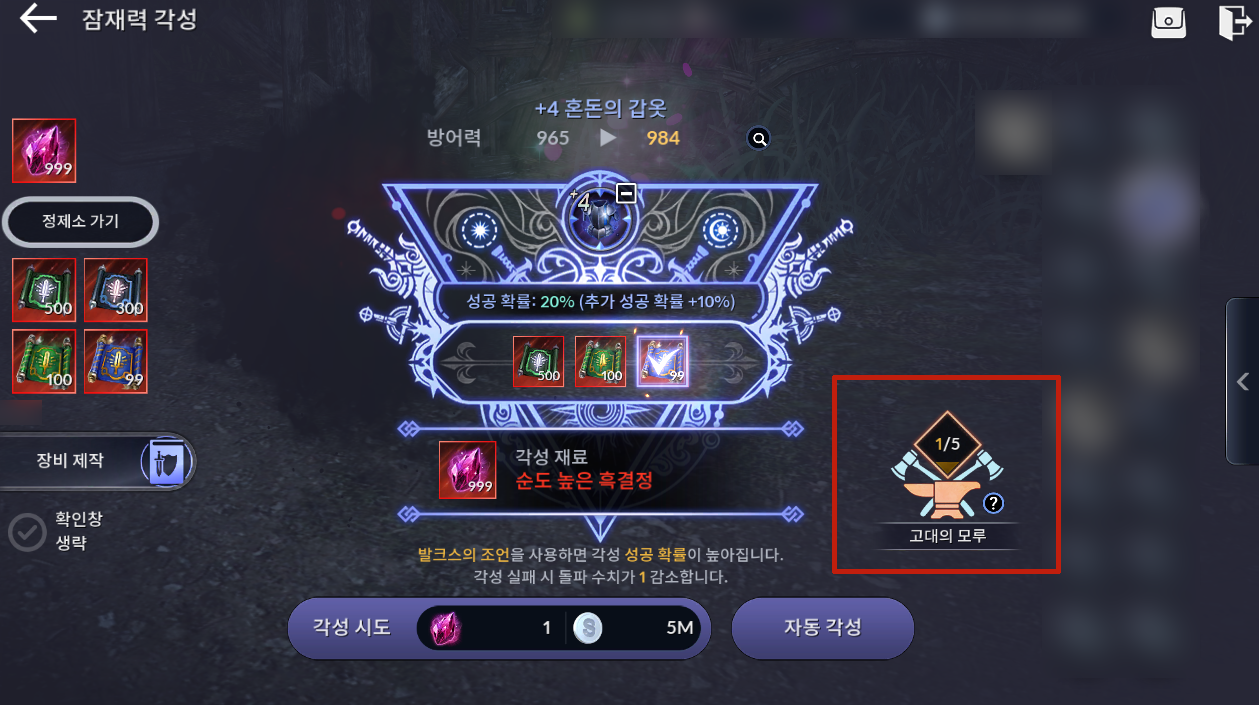 ▶ 잠재력 각성 고대의 모루 예시 이미지