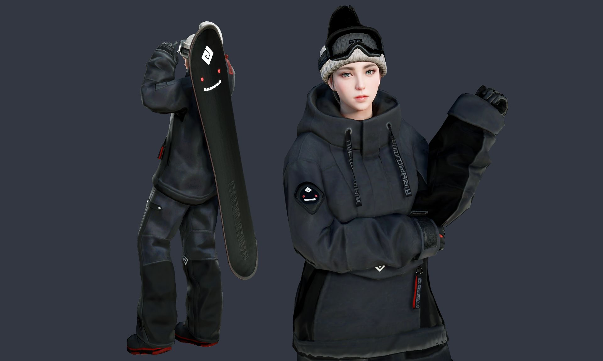 - 특정 자세에서 '스노우 보드 장식'은 캐릭터 혹은 무기와 일부 겹쳐보일 수 있습니다.